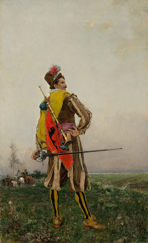 "Araldo", olio su tela firmato e datato 1876. Nelle Collezioni Reali della famiglia Savoia dal 1877 al 1946.