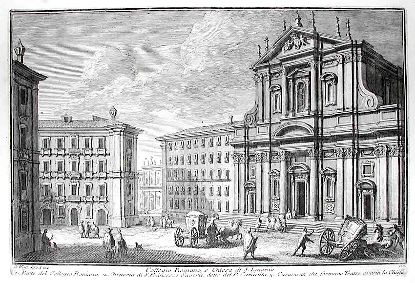 Collegio Romano e Chiesa di S. Ignazio ispirato alla serie "Delle Magnificenze di Roma Antiche e Moderne" di Giuseppe Vasi (1710-1782), acquaforte, inizio del sec. XIX.